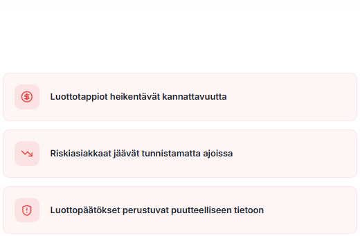 Ilman järjestelmällistä luottoriskin arviointia riskiasiakkaat jäävät tunnistamatta ja luottopäätökset perustuvat enemmän tuntumaan kuin aineistoon.