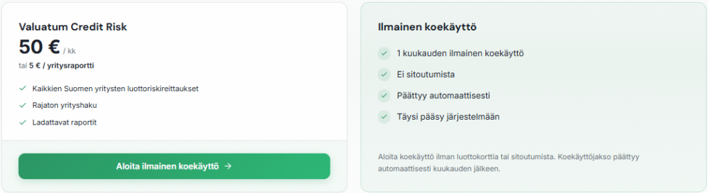 Voit kokeilla Valuatumin luottoriskijärjestelmää maksutta yhden kuukauden ajan.