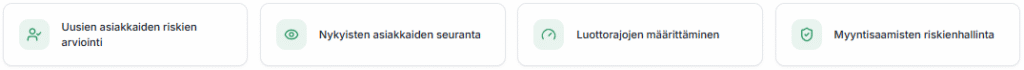 Valuatumin luottoriskijärjestelmä on suunniteltu juuri tähän tarpeeseen: se auttaa tekemään parempia luottopäätöksiä ennen kuin myönnät maksuaikaa tai solmit uuden asiakassuhteen.